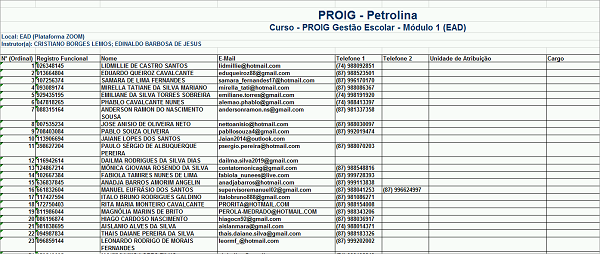 Dados dos servidores inscritos