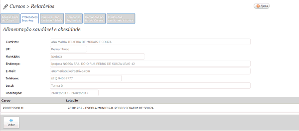 para Detalhar os dados pessoais do cursista, cargo e lotação do servidor.