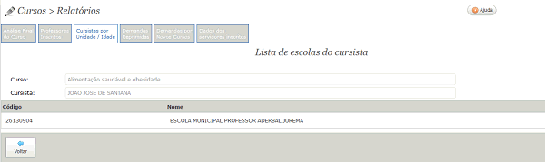 Possibilita diversas consultas sobre os cursos disponibilizados pela instituição, como turmas concluídas, cursistas por idade, professores inscritos, entre outros.