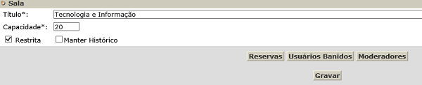 • Ao alterar uma sala de chat é opcional selecionar ou não a opção 'Restrita'. Definir uma sala como restrita significa que somente determinados usuários terão acesso a ela, por isso é necessário cadastrar quais são esses usuários através das reservas, diferentemente da sala não restrita, na qual todos os usuários logados terão acesso.