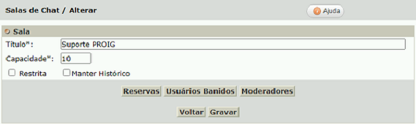 Clique em Chat - Salas ou Entrevistas – Alterar e clique sobre o título referente à sala ou entrevista desejada.