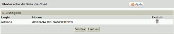 Selecione o usuário para incluí-lo como moderador e clique no botão Incluir e em Ok para confirmar a ação.