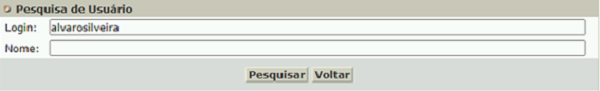 Informe o campo Login e/ou o campo Nome do usuário que será inserido como moderador. O sistema exibirá a listagem de todos os usuários cadastrados de acordo com os dados inseridos.