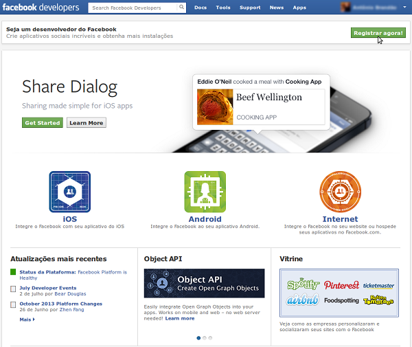 3- Acesse o Facebook Developers pelo link (http://developers.facebook.com);